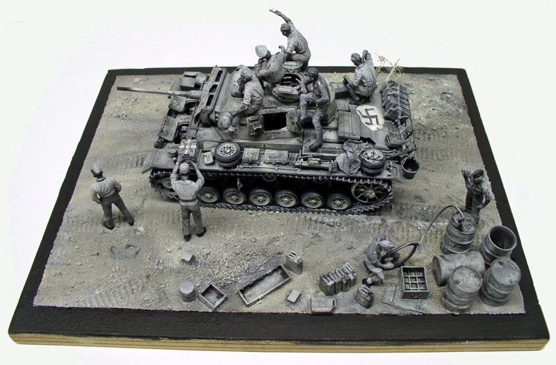 Uniforms are painted in Humbrol oil with dry-brush and juice finishes...