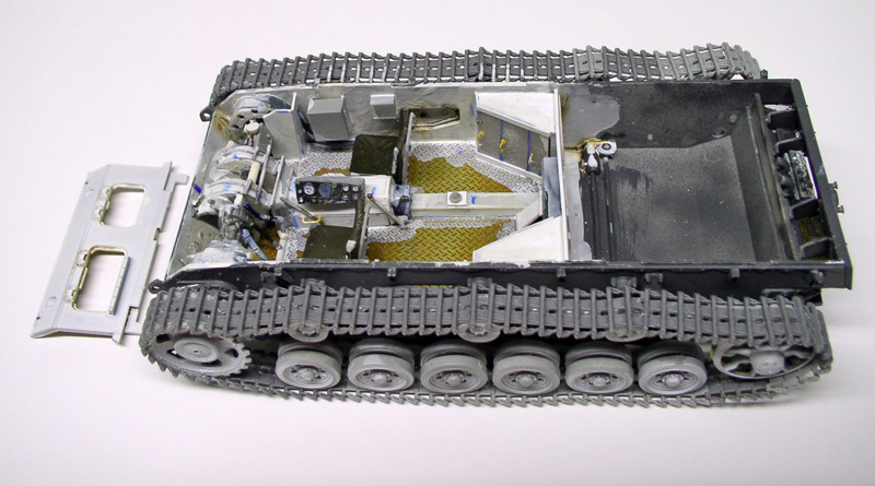 ...the transmission and the various components are created from plastic card and parts from the surplus box. Only the floor comes from a piece of photoetched plate...