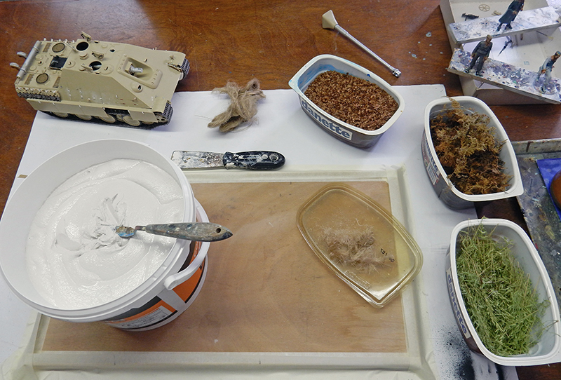 On ajoute encore de la végétation et du sable sur le sol et on procède à des ajouts de teintes à l'aérographe...