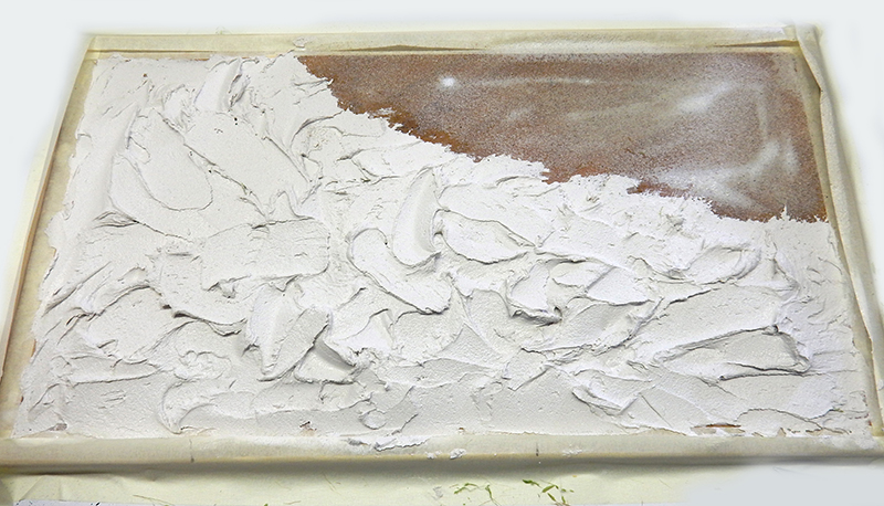 We lay out our various branches and leaves, a little sand and Zeechium for the shrubbery...