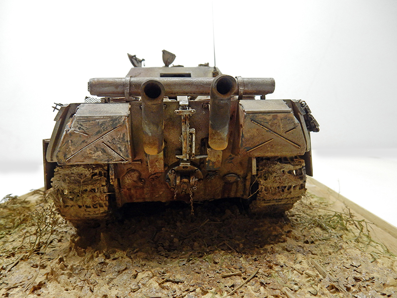 Exposed tracks and body skids are painted in rusty brown tones, then patinated and metallized in some places...
