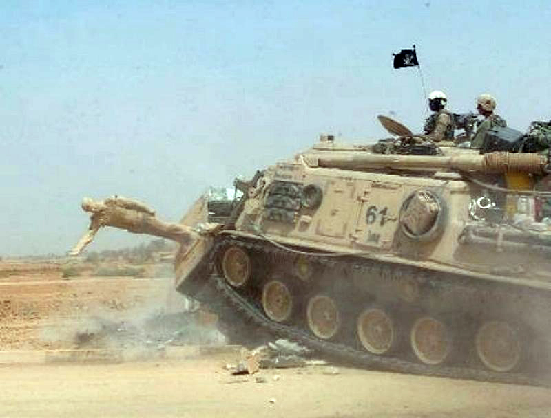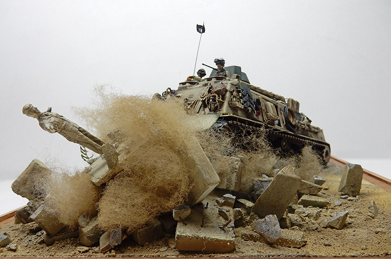 Lors de la guerre du Golfe, les américains se sont faits un devoir de détruire toutes représentations de feu Saddam Hussein, statues et autres stèles... L'engin du génie M88 comportant une lame de bulldozer à l'avant étant l'outil idéal pour cette fonction...