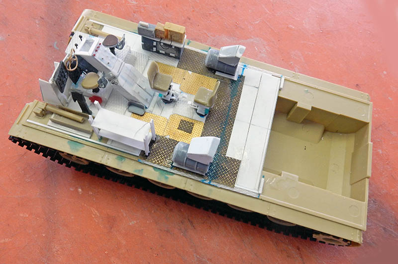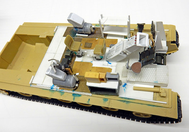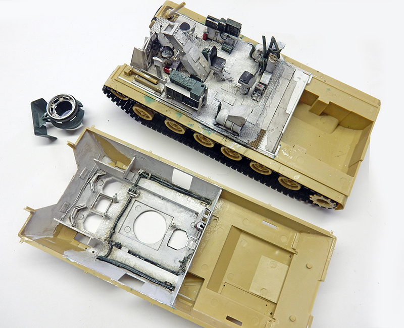 Then it's on to the final dry-brush paint job. The ACAV turret - added to the kit - is also painted. The upper part of the body has been enlarged and the original turret removed...