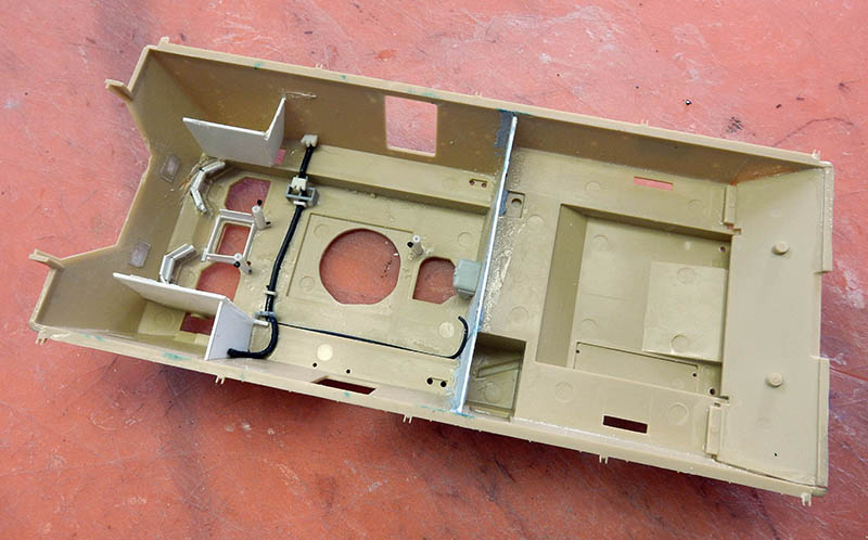 A rear view, with the various cables added. The side doors, glued in the open position, will hold a jerry can with its holder...