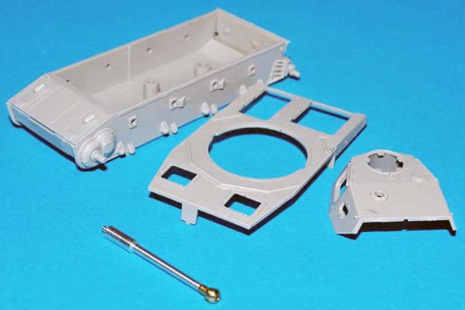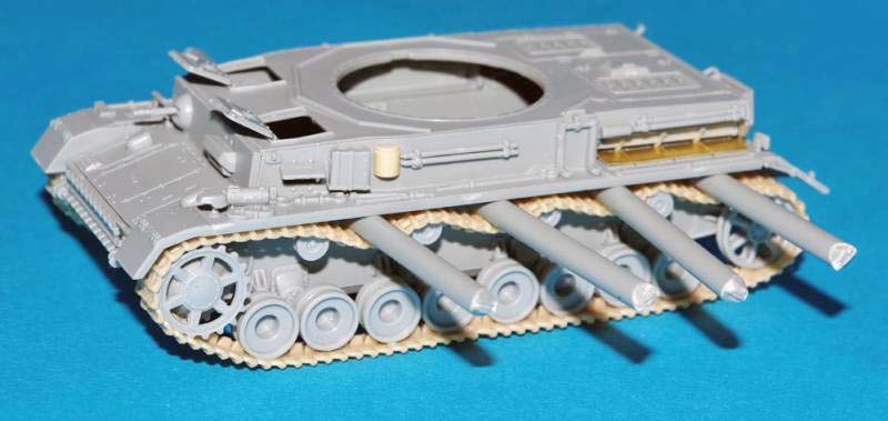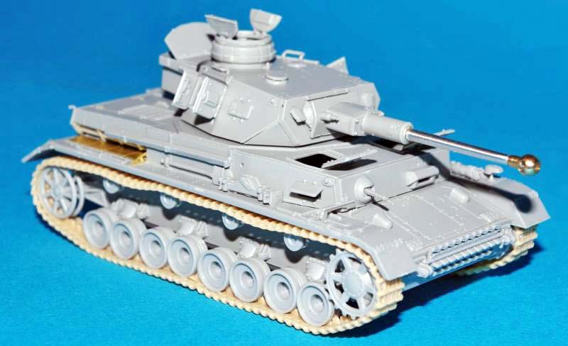 Assembly of the Dragon Panzer IV in 1/72 scale. The main parts, plus a turned aluminum cannon...