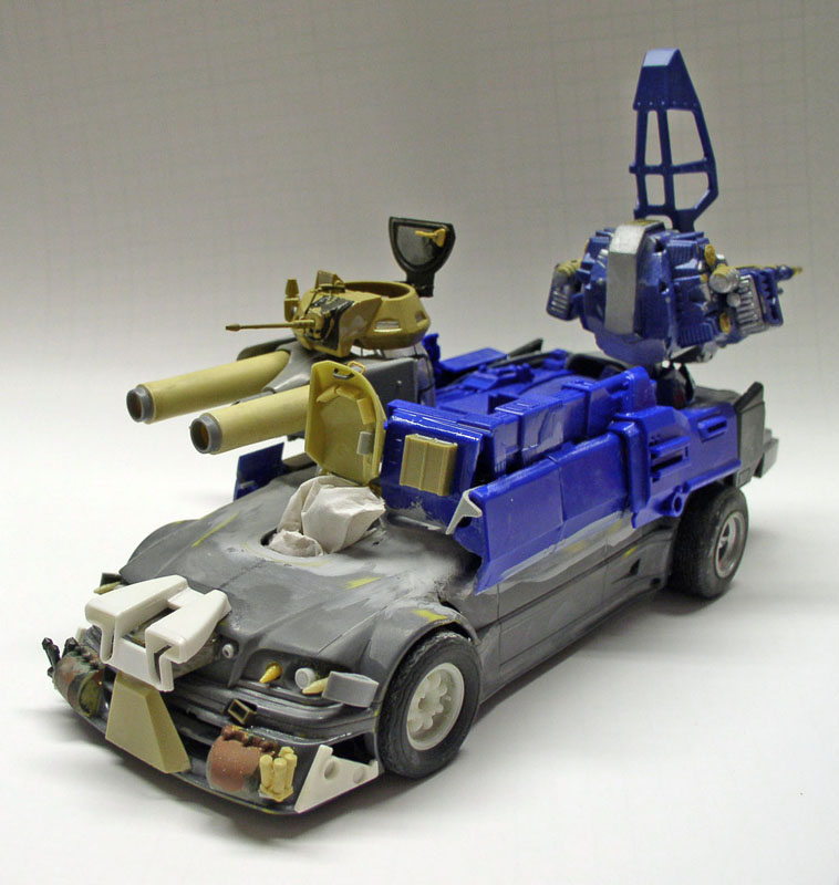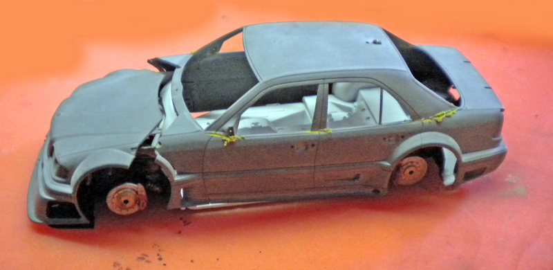 The base is a 1/24 scale Mercedes body with sawn-off roof pillars....