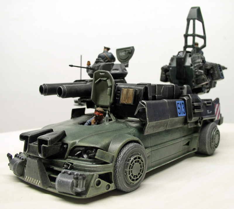 The vehicle's 4 wheels are retained. A Bradley hatch is added to the hood to accommodate the driver, and a turret on the two resin guns. A folding bracket is inserted on the side...