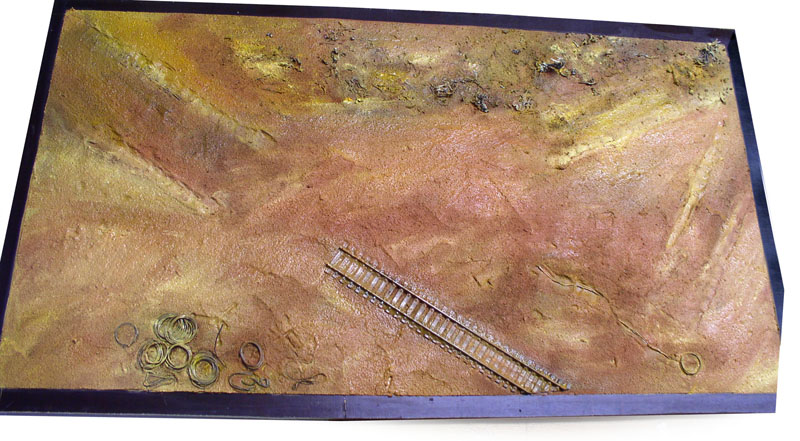 La maquette est empoussiérée avec de la poudre de pastel le sol sera de la terre rouge d'Australie...