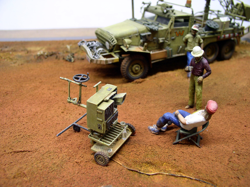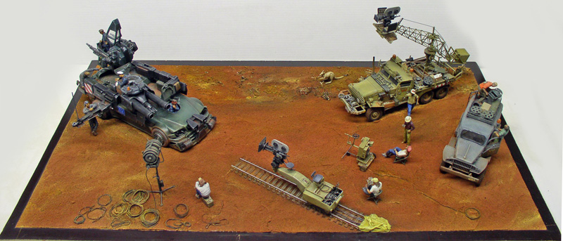 Un essai de positionnement dans le décor. Les véhicules viennent d'un autre diorama...