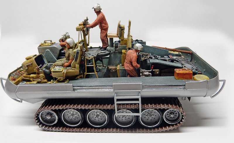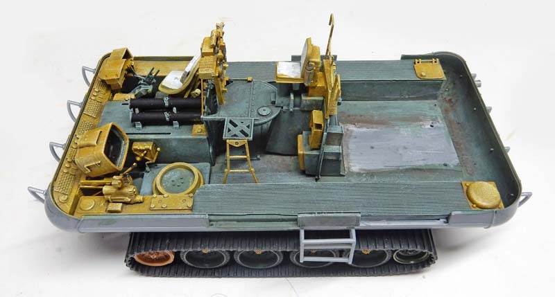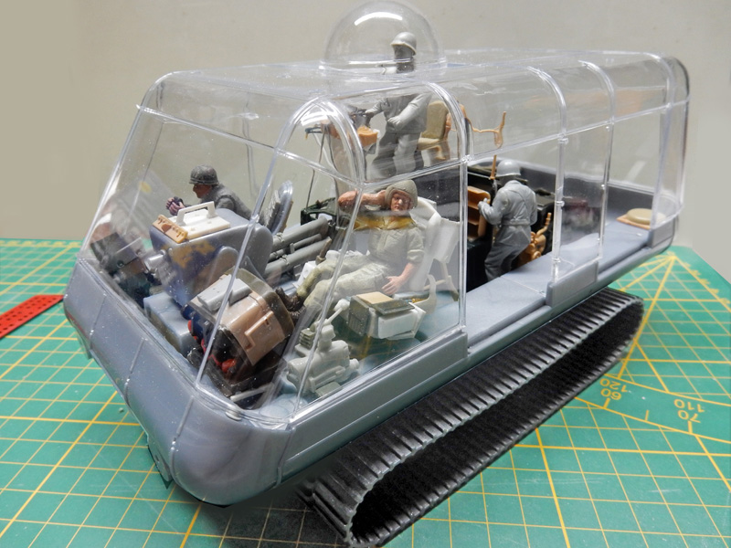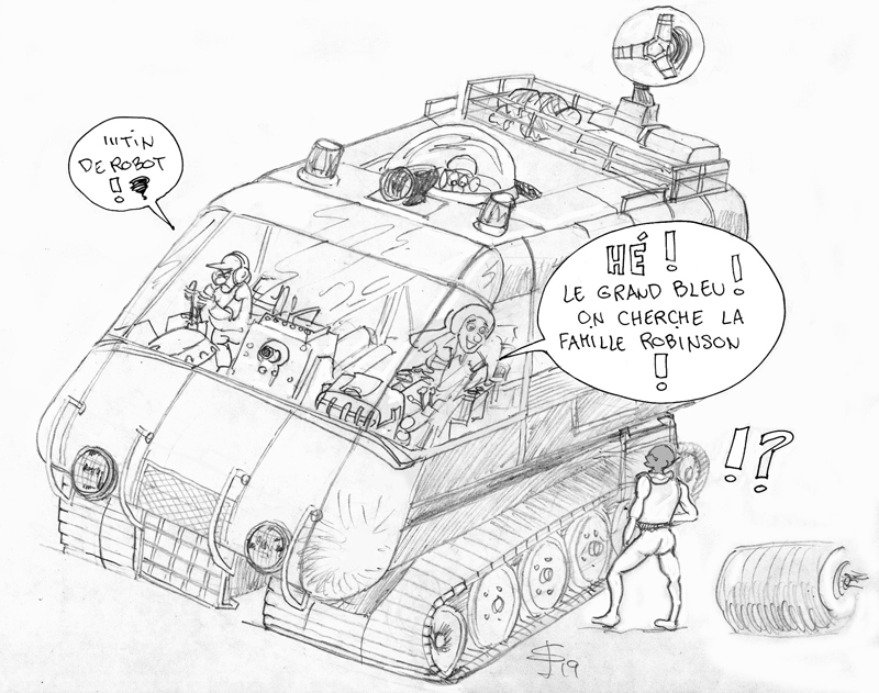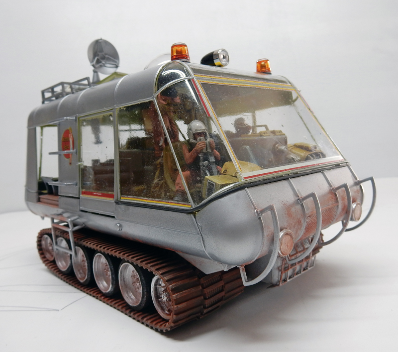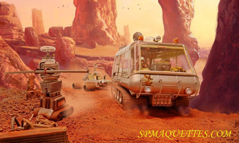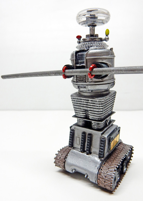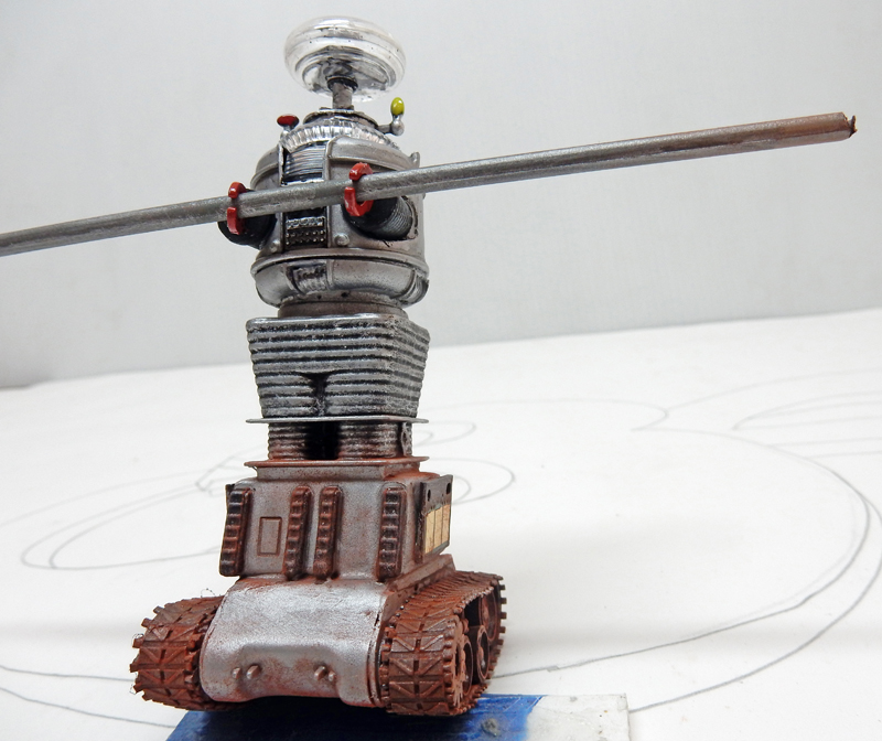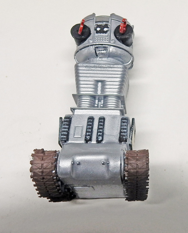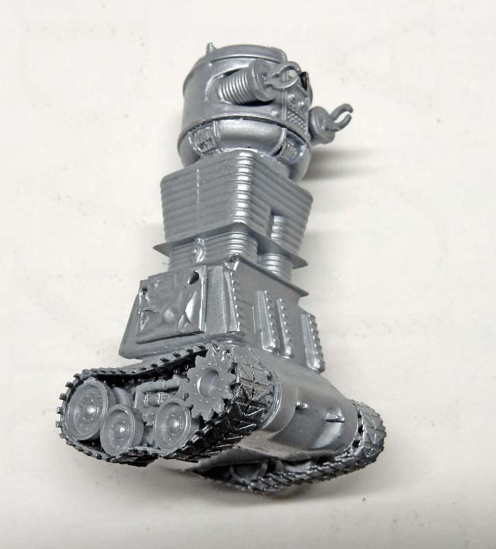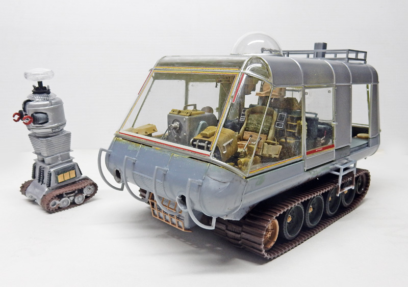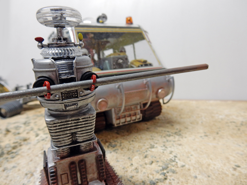 Le robot de "Perdus dans l'Espace" a été lui aussi amélioré. Les chenilles très mal gravées ont été remplacées par un vrai train de roulement à partir de pièces de Sherman à l'échelle 1/72ème...