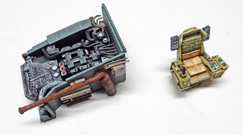 Les figurines viennent de diverses grappes et transformées en fonction. Un seul siège de la maquette est gardé pour l'équipier et détaillé...