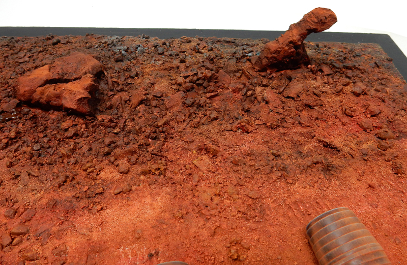The finished robot is painted on the left and aged in situ on the right (the bottom has been dusted with pastel powder)...