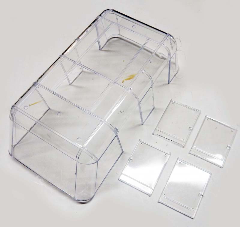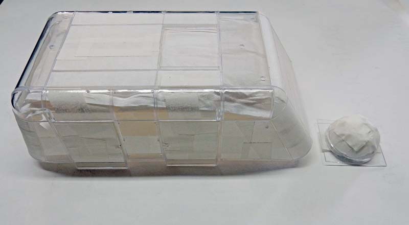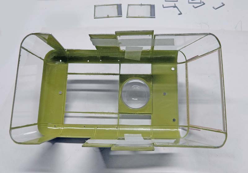 Et enfin, mise en place et collage de la verrière. Une couche de Klir sera passée à l'intérieur avant puis plus tard à l'extérieur sur toutes les parties vitrées...