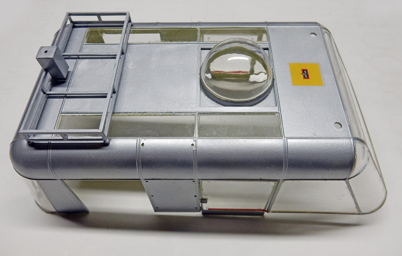 Finally, the glass roof is fitted and glued. A coat of Klir (floor cleaner) will be applied on the inside first, then later on the outside on all glass parts...