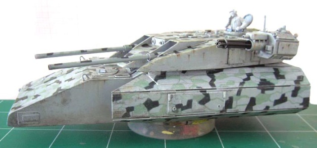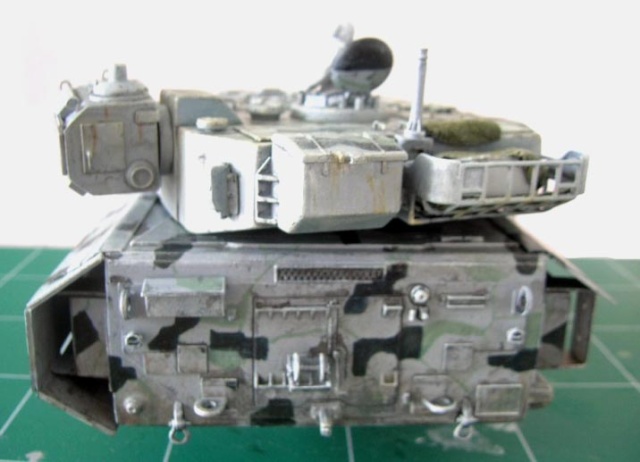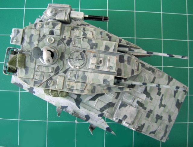 Voici le modèle à peu près terminé. Le camouflage urbain est réalisé au feutre noir & marron clair (qui vire au gris-vert quand il est sec)...