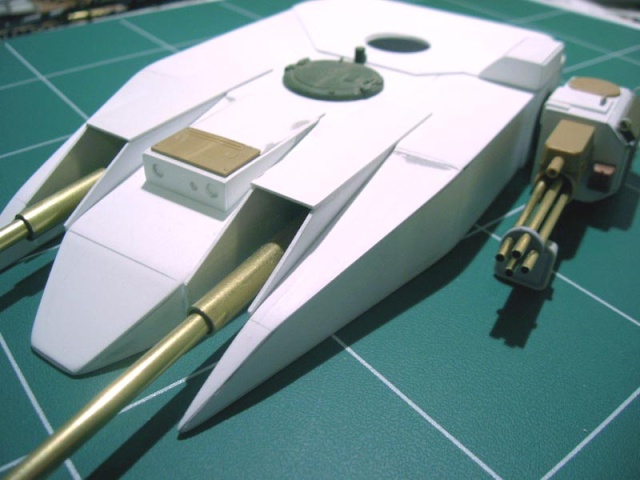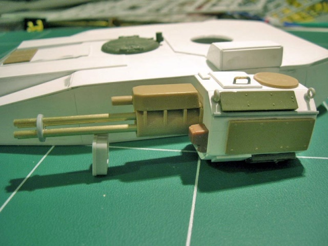 Pour commencer, voici les photos de la tourelle avec les canons "turbo-laser jumelés" (en étain), et les 4 canons rotatifs de 20 mm (également en étain) qui iront sur le côté gauche de la tourelle...