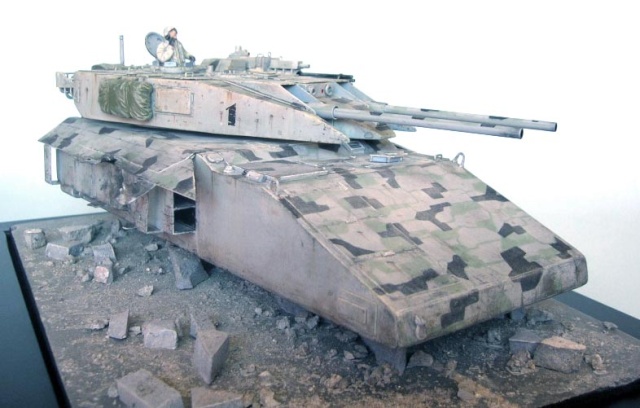 Here's the model just about finished. The urban camouflage is done with black & light brown felt (which turns grey-green when dry)...