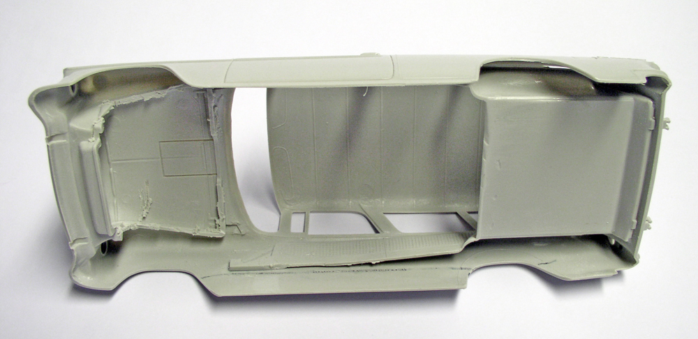 Le véhicule sera constitué de deux parties principales : une coque de Chevrolet 55 à l'échelle 1/24ème dont la partie interne est découpée, on ne garde que la malle arrière et les côtés latéraux...