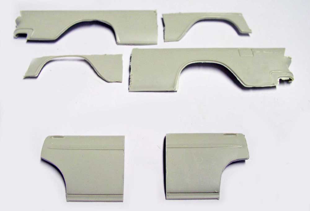 Les portes : le problème des taxis est qu'ils ont quatre portes... Le modèle utilisé ici - comme la plupart des kits à cette échelle, ne dispose que de deux portes. Donc, à l'aide de la seconde voiture, on récupère les deux portes avant que l'on découpe pour les façonner de manière à les disposer à l'arrière...
