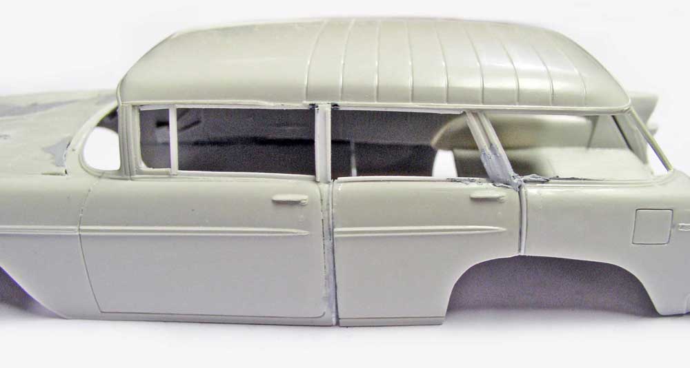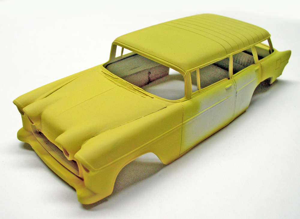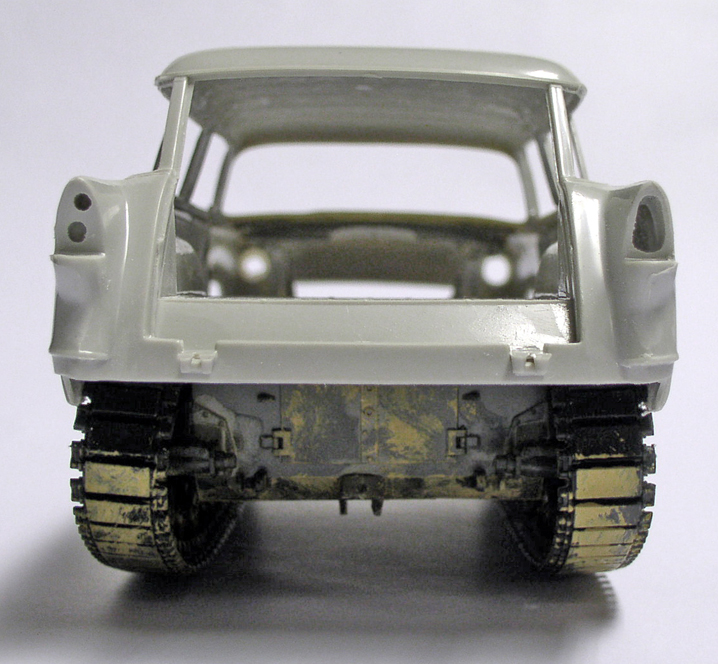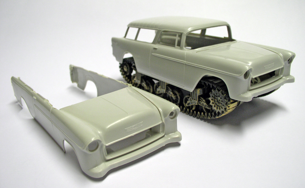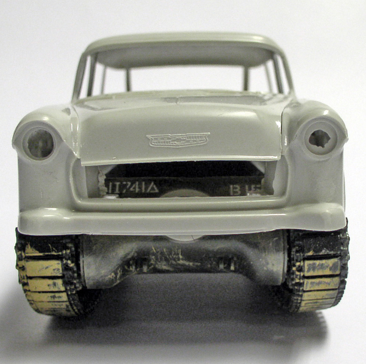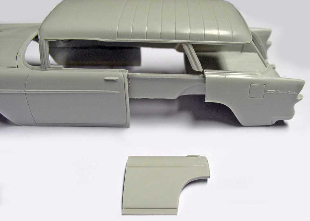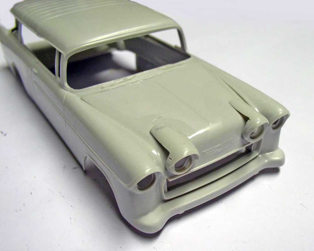 The vehicle will be made up of two main parts: a 1/24th scale Chevrolet 55 body with the inner part cut out, leaving only the rear trunk and sides...
