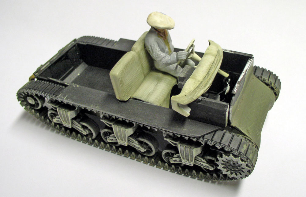 Part of the floor, including the car's pedals and center console, are glued to the floor of the tank...