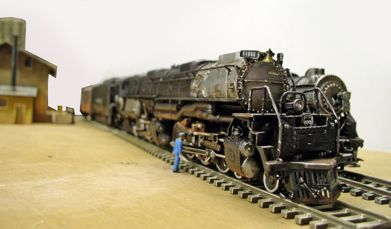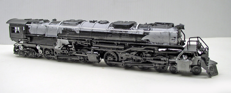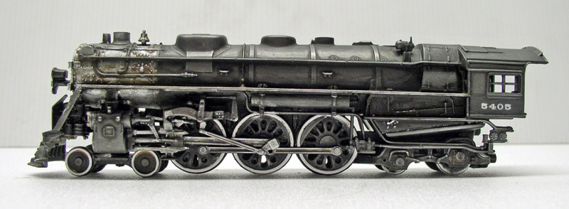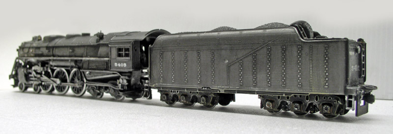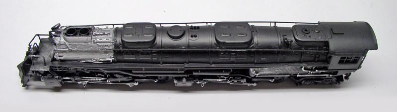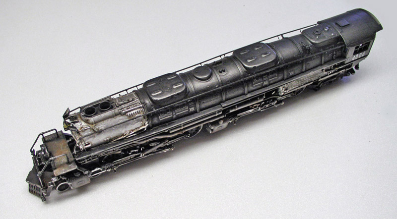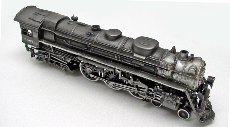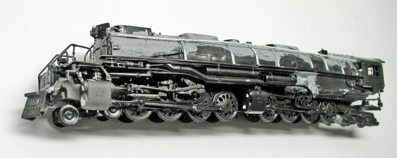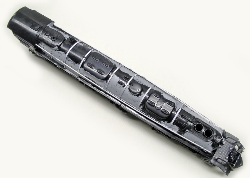 Once dry, the matte black is rubbed with lead pencil to create the steel black characteristic of steam engines...