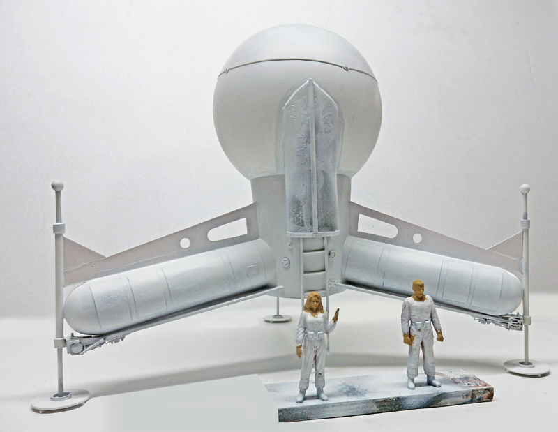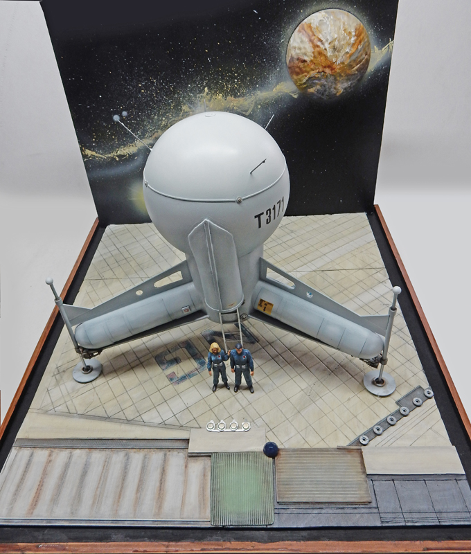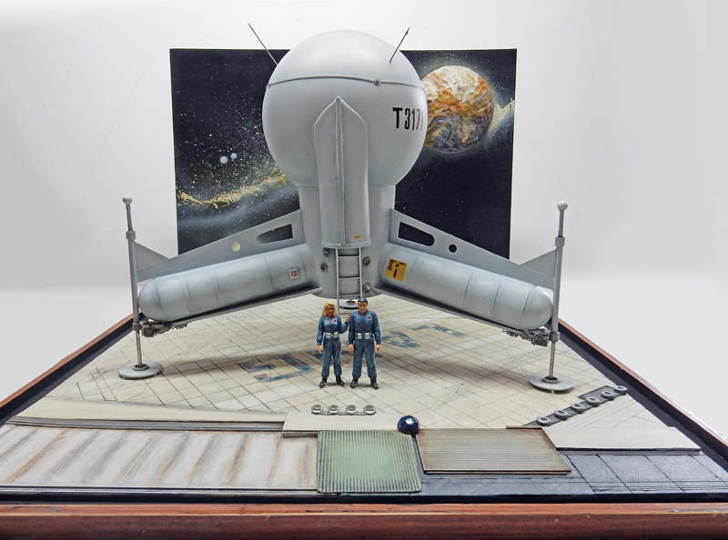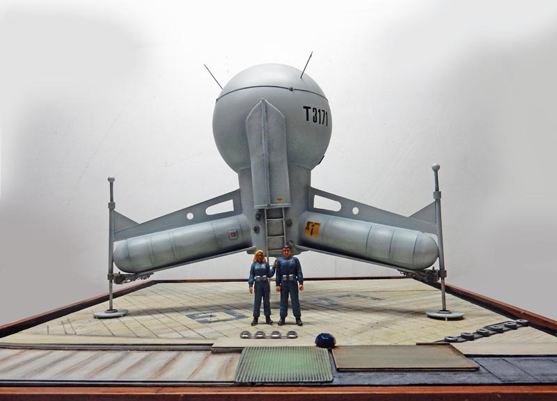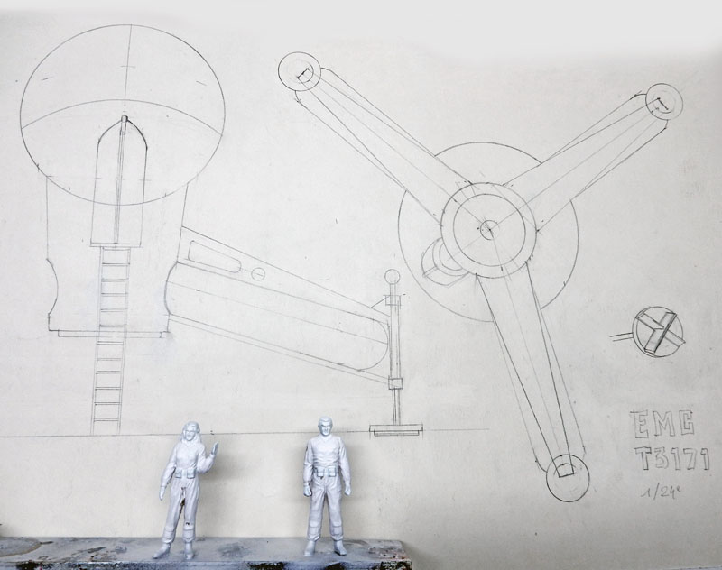 Un plan est réalisé à l'échelle 1/24ème en se basant sur les dessins de la bd et deux figurines récupérées du kit de 007 Moonraker...