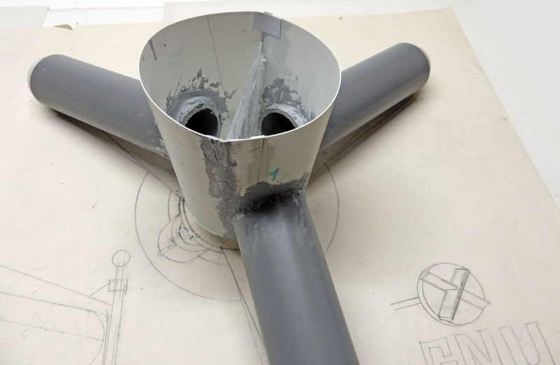 Découpe des supports d'empâtements et pose de la tuyère. Elle vient d'une capsule de cappuccino...