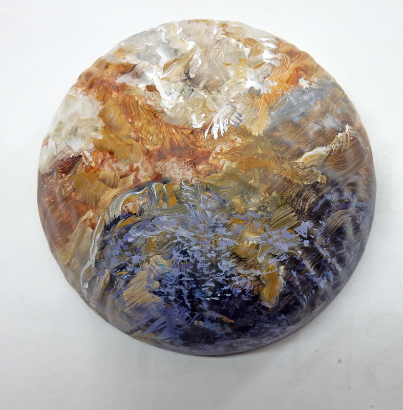 La planète est une demi-boule en plastique d'emballage de chocolat peinte à l'acrylique ayant reçu une couche d'apprêt blanc...