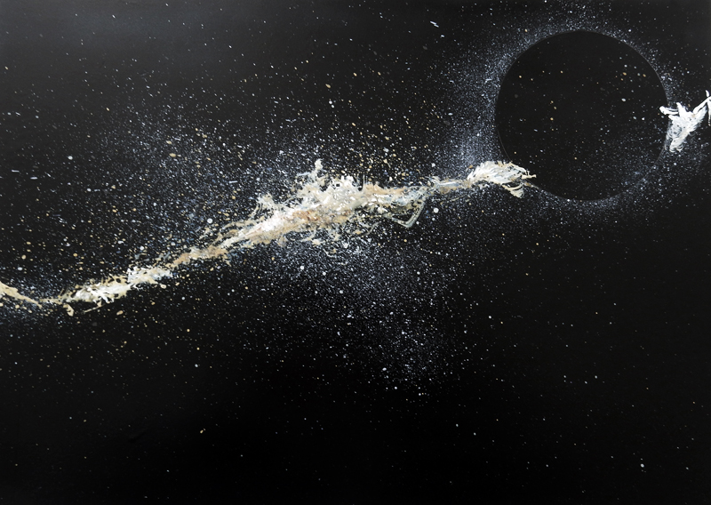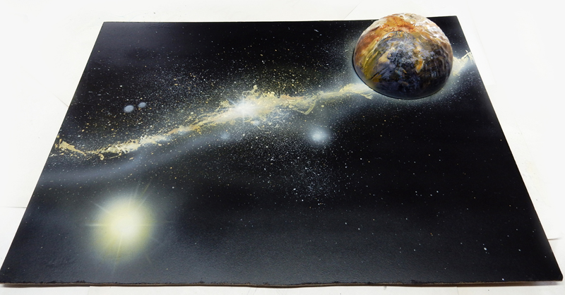 La galaxie et les étoiles sont peintes à l'acrylique...