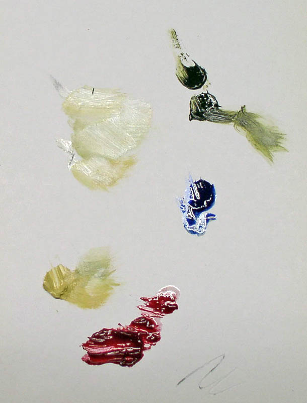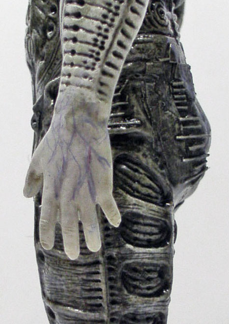 On finit l'éclairage de la peau en fondant  avec du jaune de Naples et du blanc en laissant ressortir les ombres et les veines. Il faut penser que la peau des avant-bras se mêle plus haut à la partie bio-mécanique...