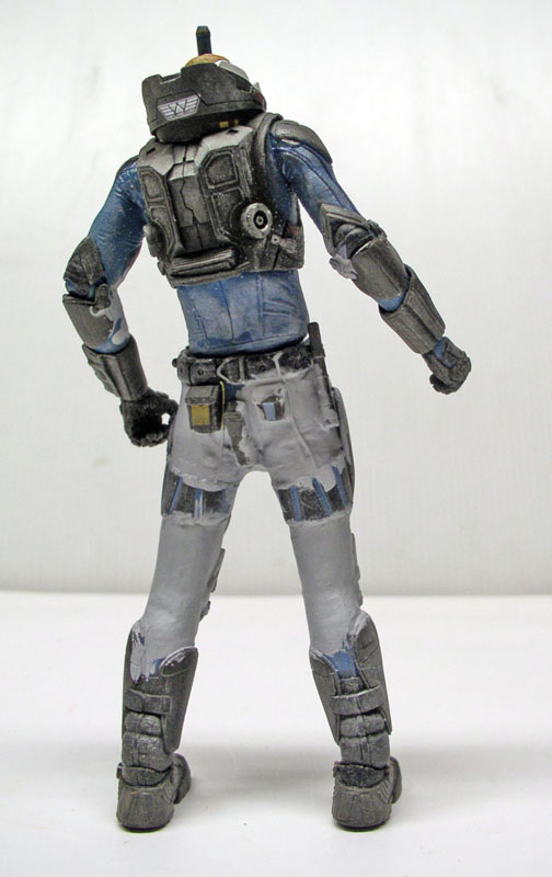 The outfit is painted with Humbrol oil. Suit: 134 + 221 & 50 + white. Equipment: 33 + 32 + 27 + white.