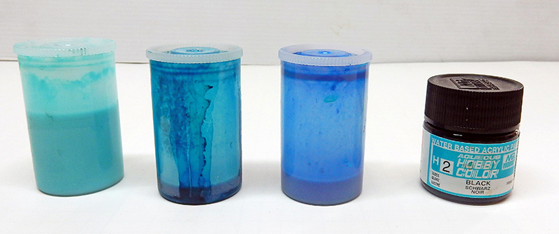 The set is painted with the usual Liquitex acrylic paint based on phthalocyanine blue, black and cobalt blue...