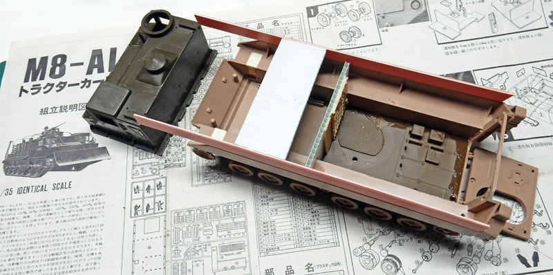 For this kit, which lacks the body and running gear, we'll be using a Tamiya Bradley body and running gear...