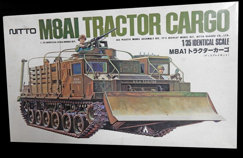 Au départ, un vieux kit de la marque Nitto, le M8A1, un tracteur chenillé assez rare. Problème : il est donné pour une échelle au 1/35ème, alors que les cabines sont en fait à l'échelle 1/48ème ! Pas bien !