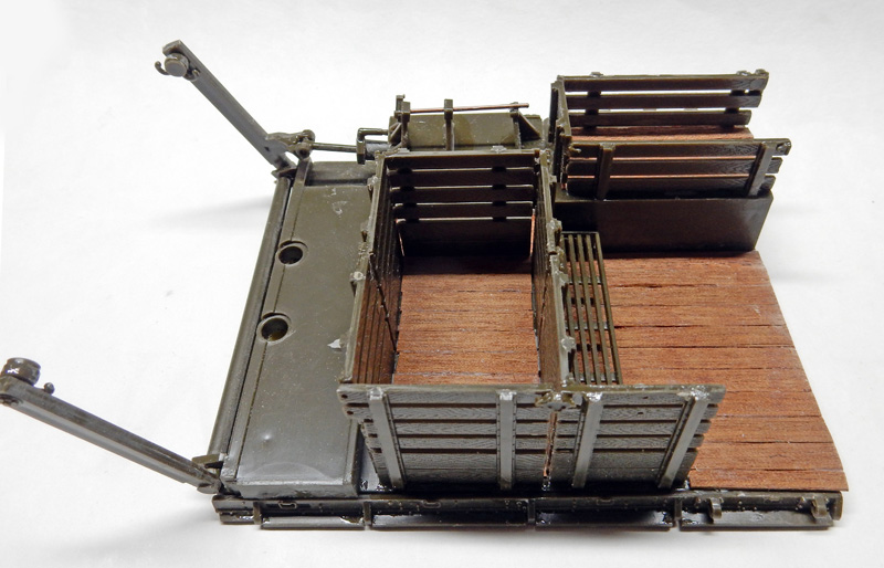 La superstructure arrière. Le plancher est fabriqué en baguettes de balsa teintées terre d'ombre et terre de sienne...
