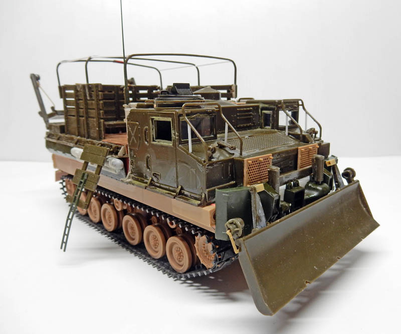 Ensuite on passe le jus habituel Terre d'ombre, Terre de Sienne pour faire ressortir les détails. Une fois sec, on fait ressortir les parties métalliques légèrement à base de Humbrol 56 et 91. Le véhicule est terminé, il ne manque que les marquages...
