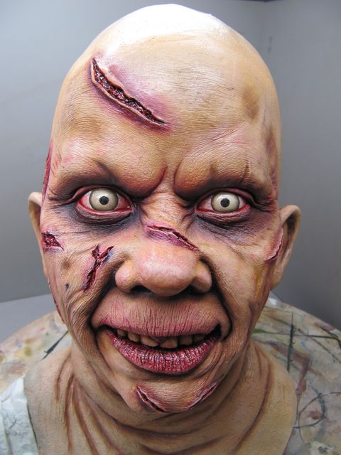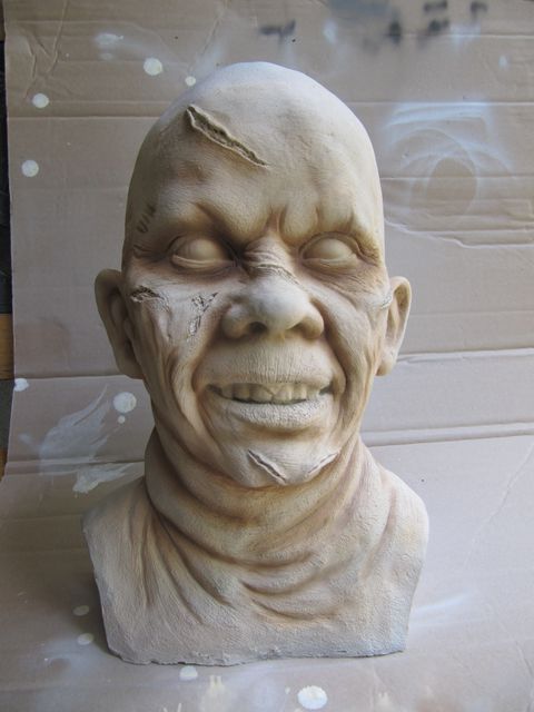 The four photos above: I made several retouches because, after drying, I realized that I needed to add a little: black in the deepest hollows (nose, mouth and eye creases). A little orange in some places. The outline of the scars... The background of the eyes is painted - white + a touch of blue (Citadel acrylic)...