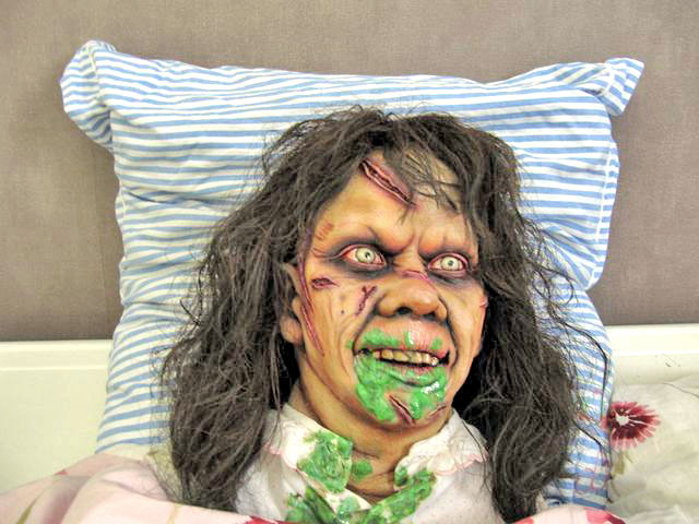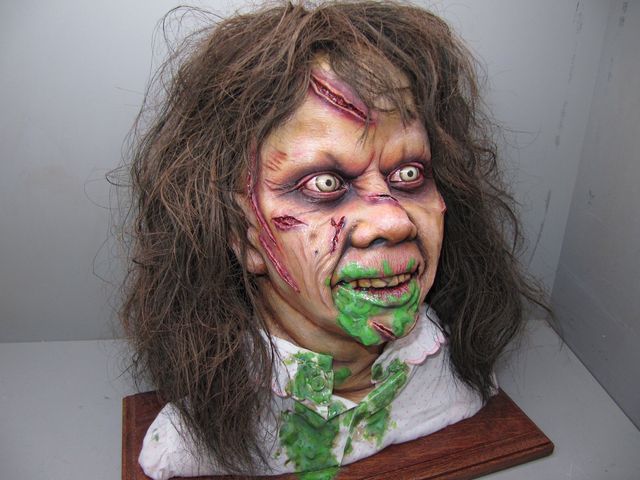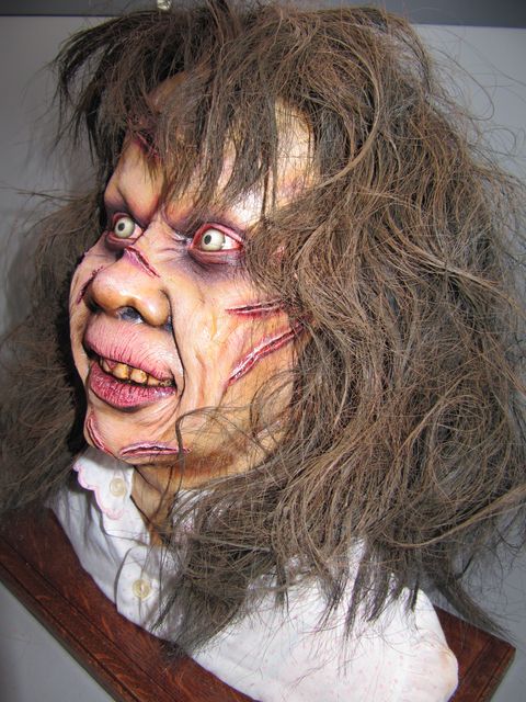 Regan, le buste à l'échelle 1 du film l'Exorciste, est fourni avec une perruque brune non conforme, l'originale étant châtain...