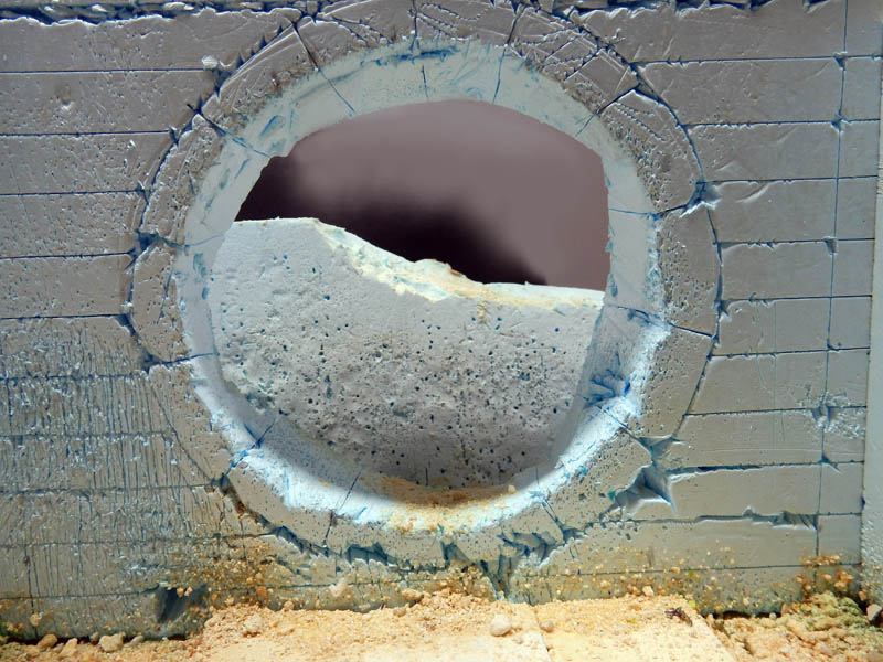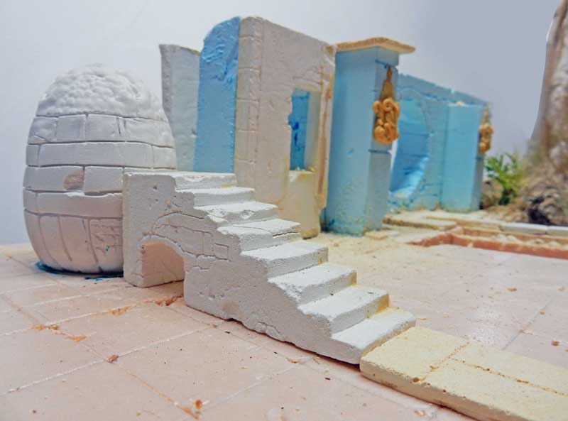 Pose de l'escalier en plâtre et de l'oeuf d'Alien re-gravé façon "pierre"...