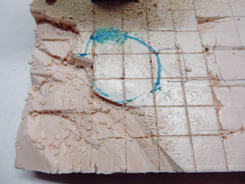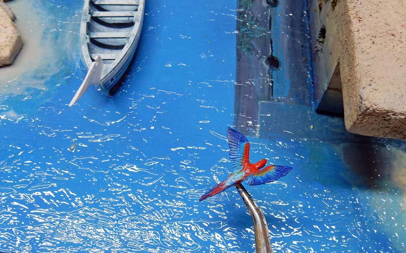 Du gel acrylique est disposé en épaisseur pour simuler les vagues dans les bassins. Le blanc disparaît au séchage...
