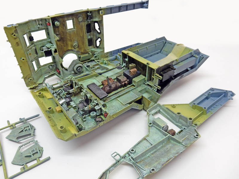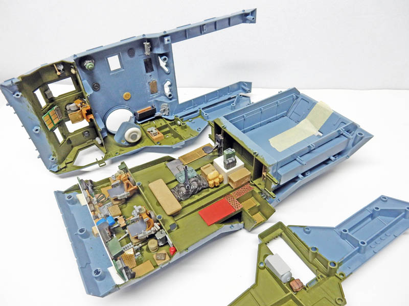 Un seul problème... Ce superbe kit est désespérément... Vide ! Pas un seul détail à l'intérieur - comme vous pouvez le constater sur la photo précédente - alors que les portes et trappes s'ouvrent. Donc, direction la boîte à surplus pour équiper l'intérieur...