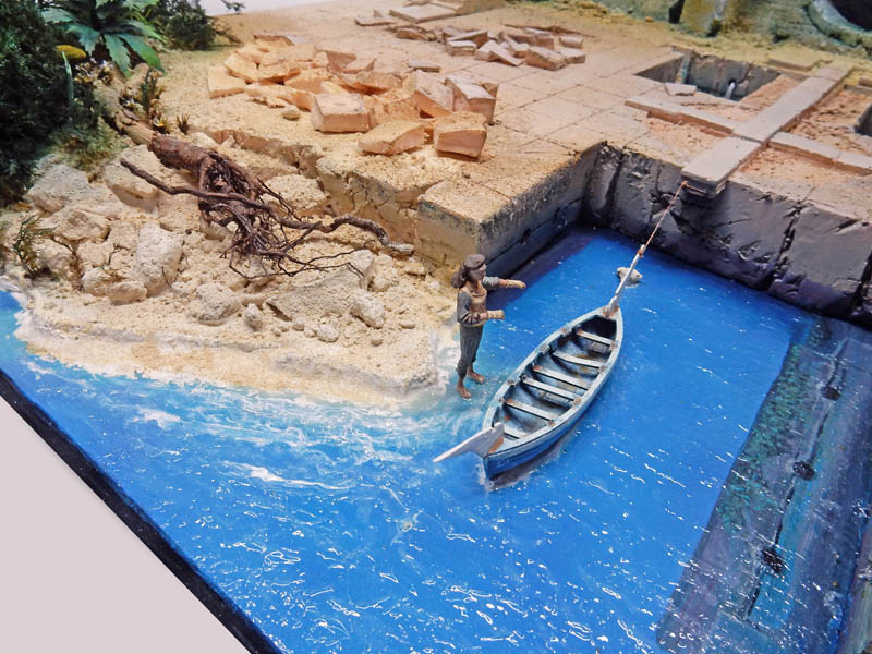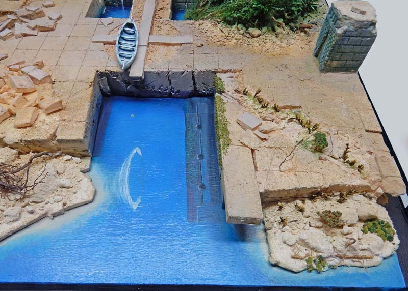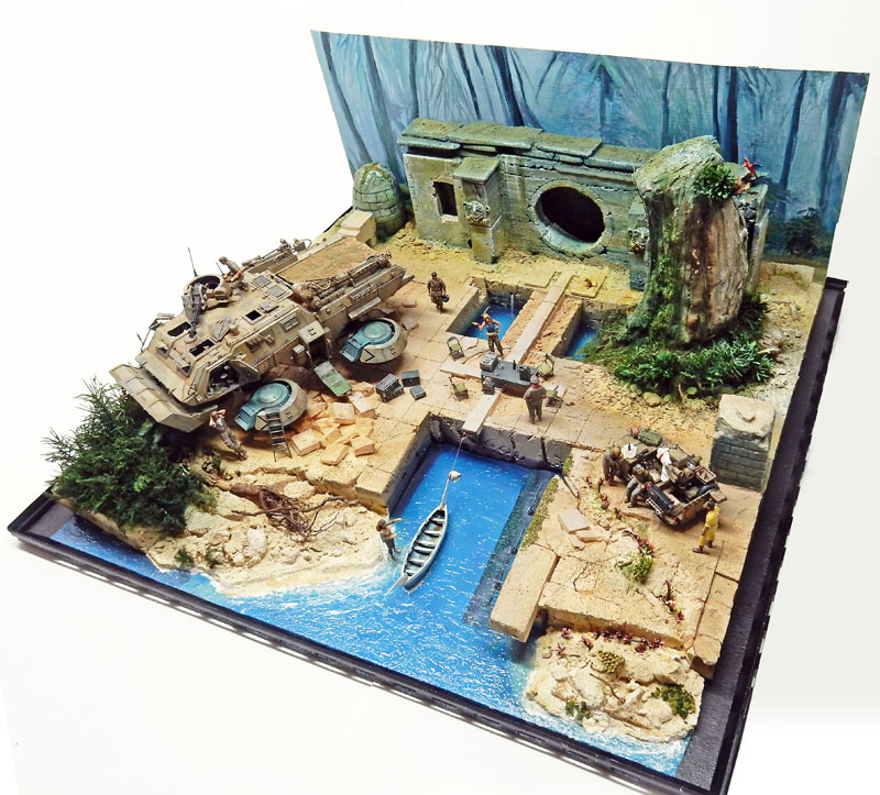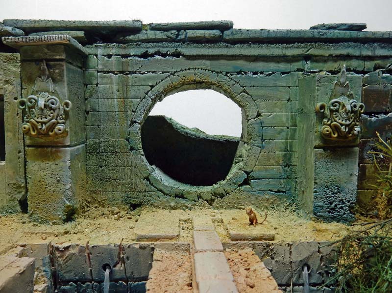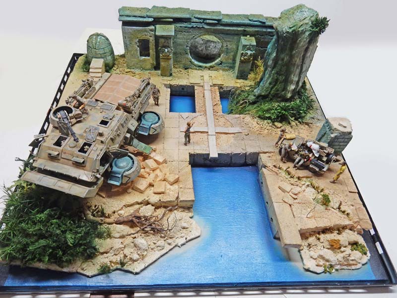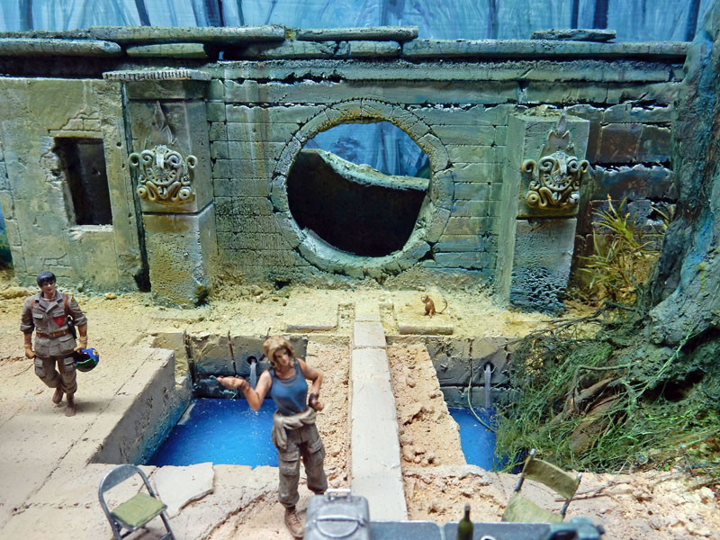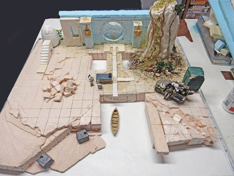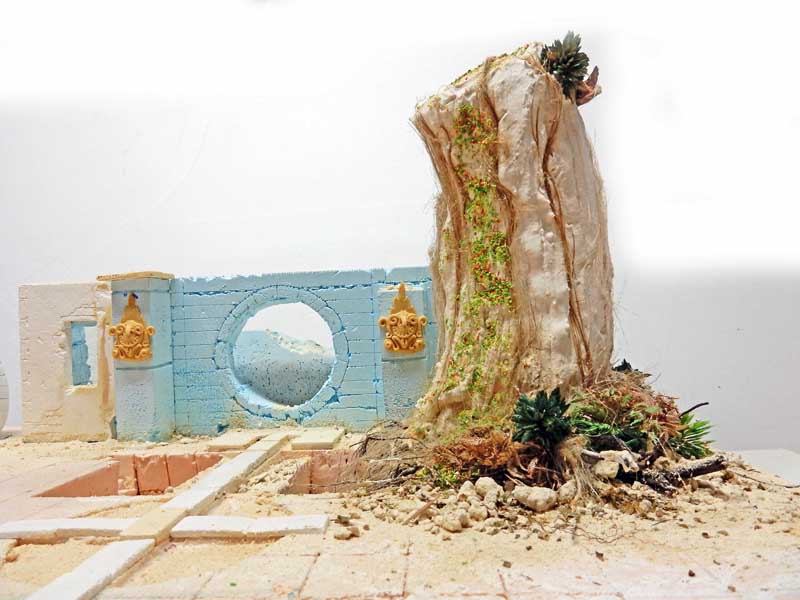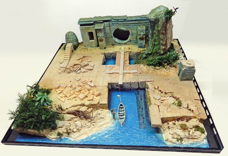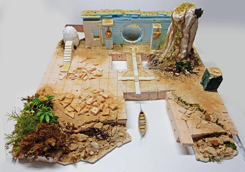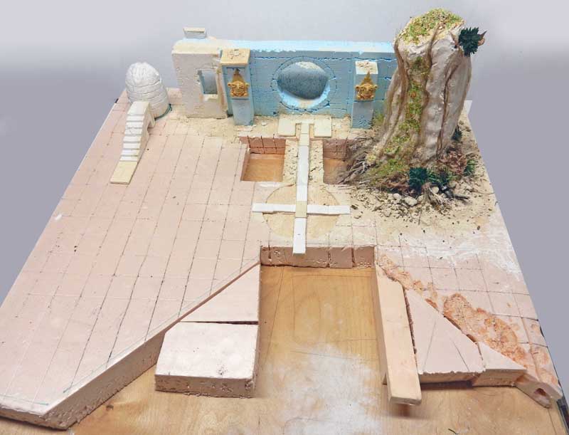 Built on a 60cm x 50cm wooden panel, it will feature extruded polystyrene structures, plasterwork and water features. And even... An Alien egg !