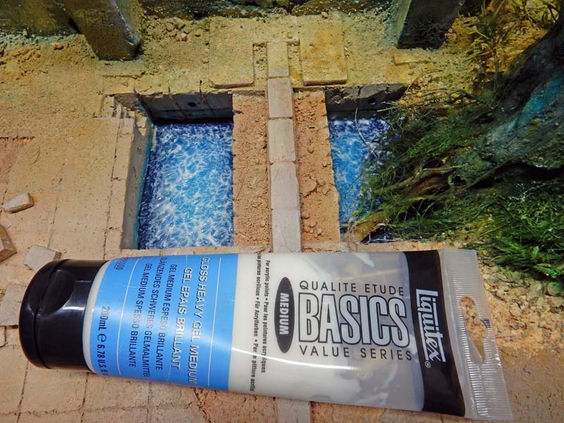 Acrylic gel is layered to simulate waves in the pools. The white disappears as it dries...
