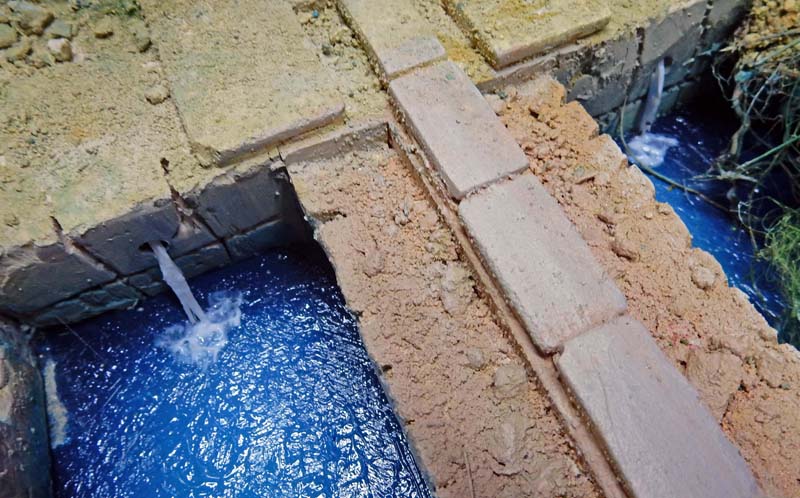 Du fil de verre va servir à simuler l'eau qui s'écoule des évacuations dans la pierre...