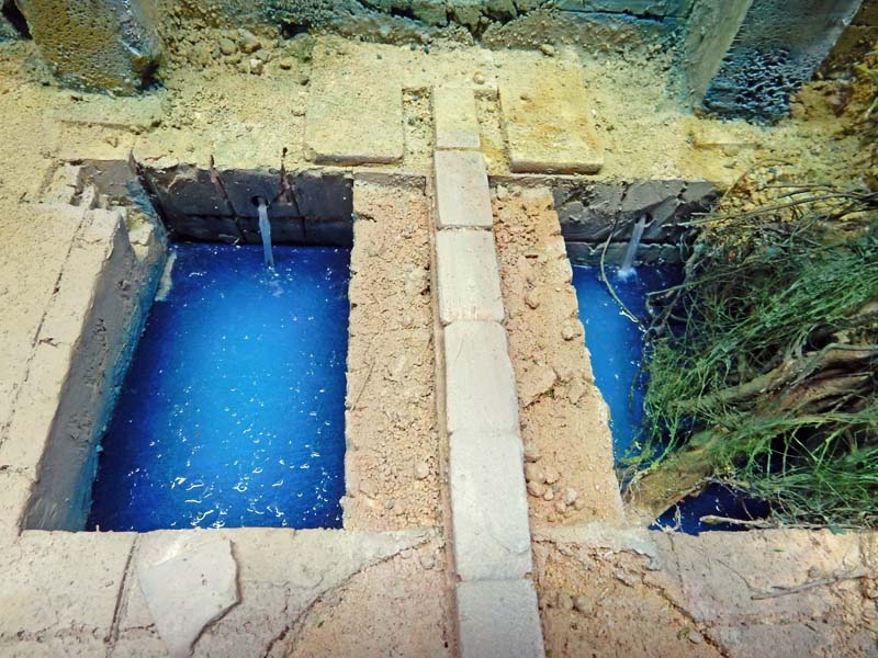 Glass wire will be used to simulate the water flowing from the drains into the stone...