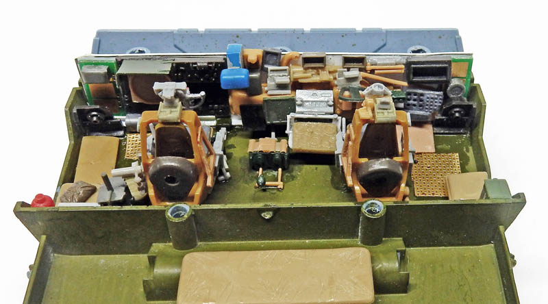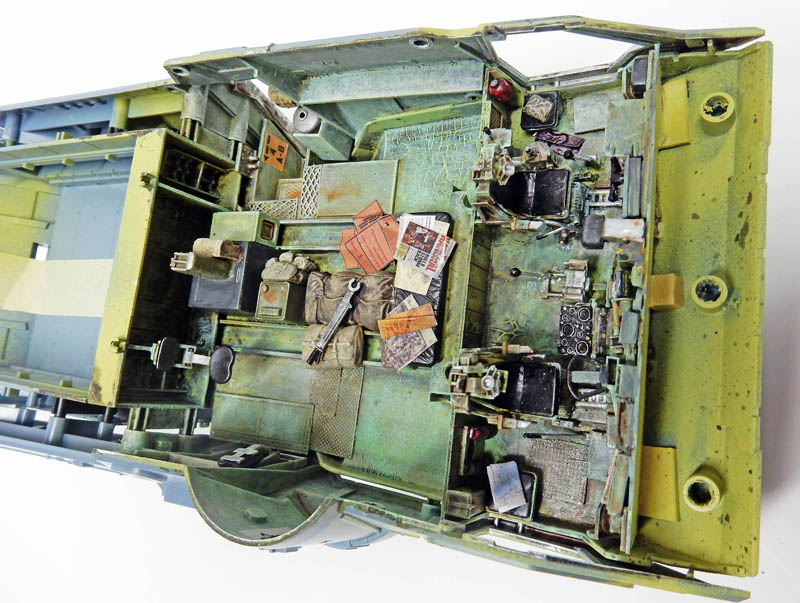 The hatches are glued open, the glazing is not used. Mirrors are added to the external rear-view mirrors...