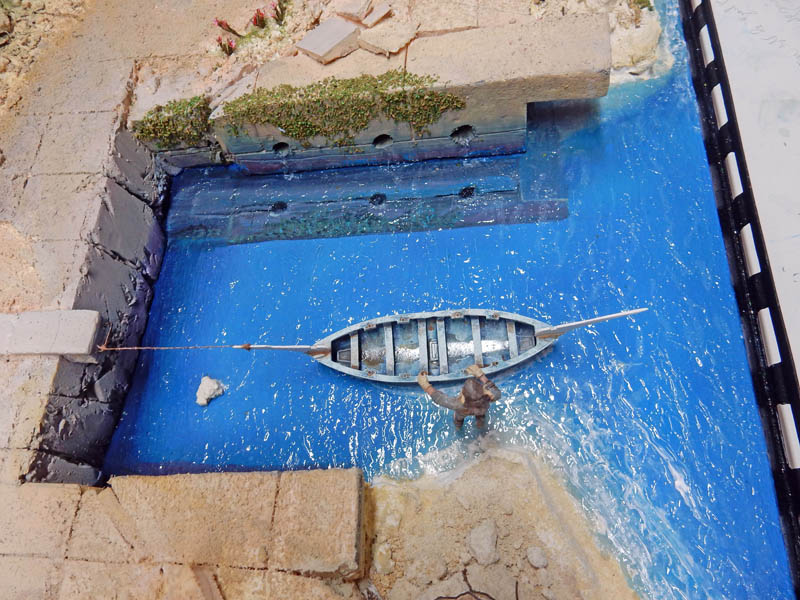 Apply a first coat of acrylic gel over the entire surface and fix the boat in the gel...
