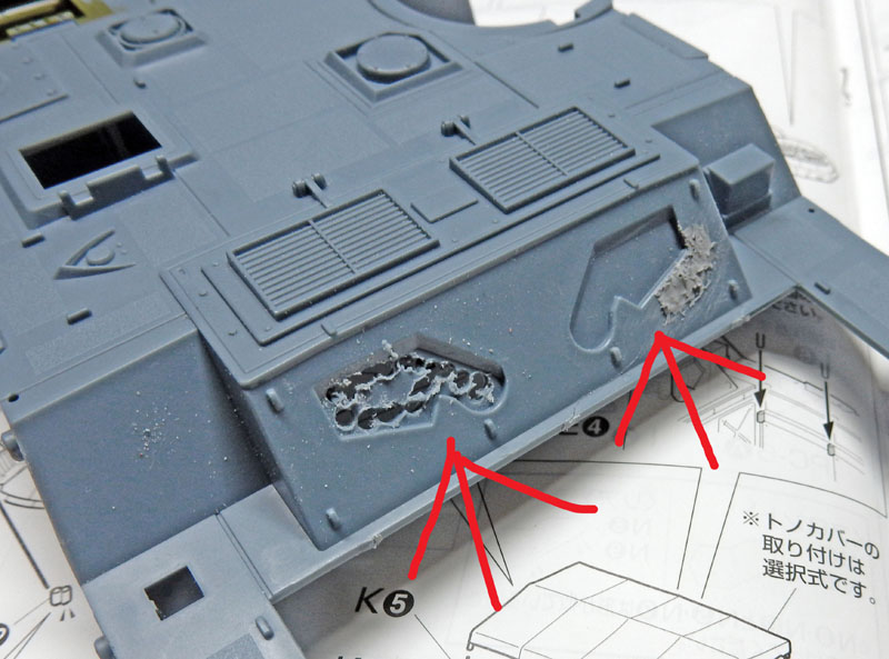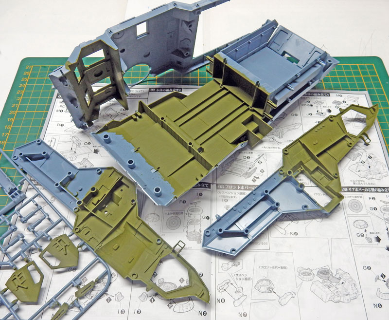 Side parts glued and puttied. Weld joints are resurfaced in Evergreen... plastic.