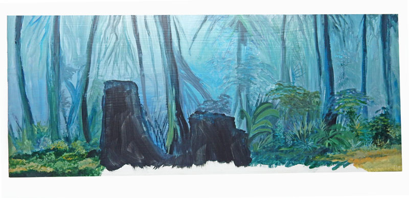 Un fond peint est ajouté derrière le décor. Peinture acrylique Liquitex...